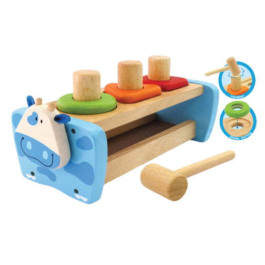 Cow Hammer and Peg Bench| Wooden Montessori toys