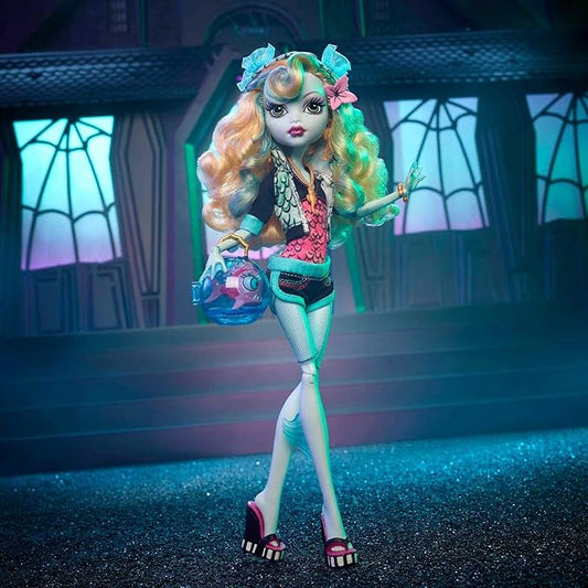 Monster High™ Lagoona Blue Reproduction Doll (10.5 in) Wearing Original Fashion & Shoes, with Pet, Doll Stand & Accessories, Gift for Collectors