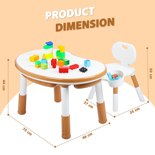 Blocks Activity Table Chair Set | Learning Drawing Dining Multipurpose Table Chair with Storage Box | Building Blocks Compatible | Sand and Water Container | Play Table Toys for 2+ Years Kids