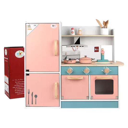 Role Play Wooden Large Pink Pretend Play Kitchen Cooking Toys With Refrigerator Stove