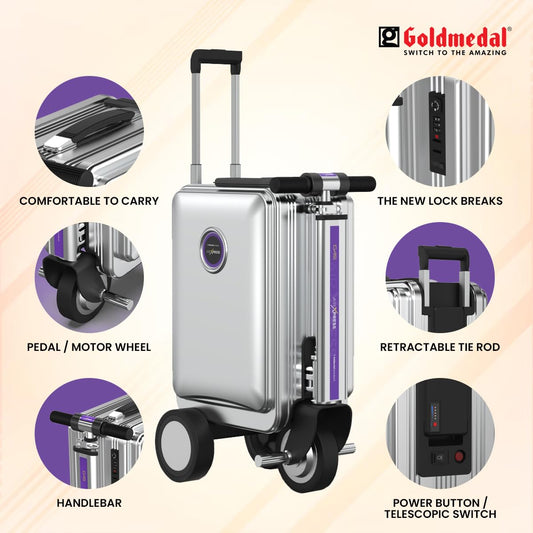 AIRXPRESS G45 Smart Riding Suitcase Bag - SILVER with 1 year warranty