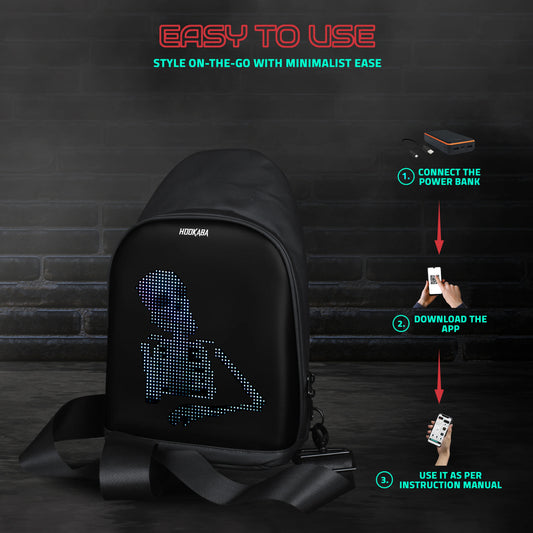 HOOKABA LED SLING BAG , | Smart Pixel Display Bag | App Controlled, USB charge, Programmable Screen & Water Resistant