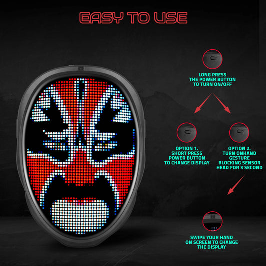 Hookaba: Enigma Eyes-App Controlled-Unisex Adult LED Mask for Halloween, Birthday Party,Wedding Party, DJ night, Live Concert,Stage Performance