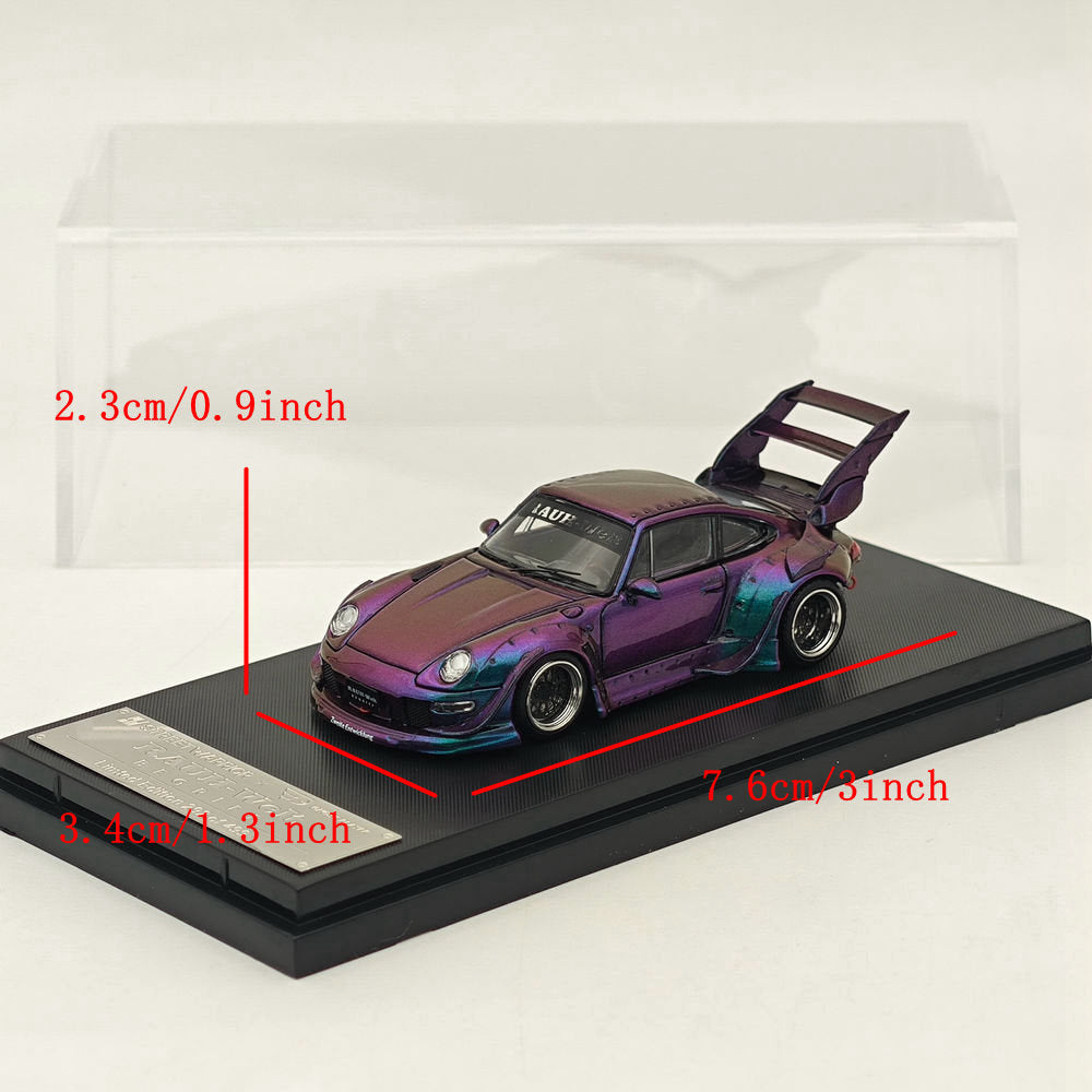 1:64Street Warrior Porsche RWB 993 Racing Sports Classic Model High Spoiler Diecast Car