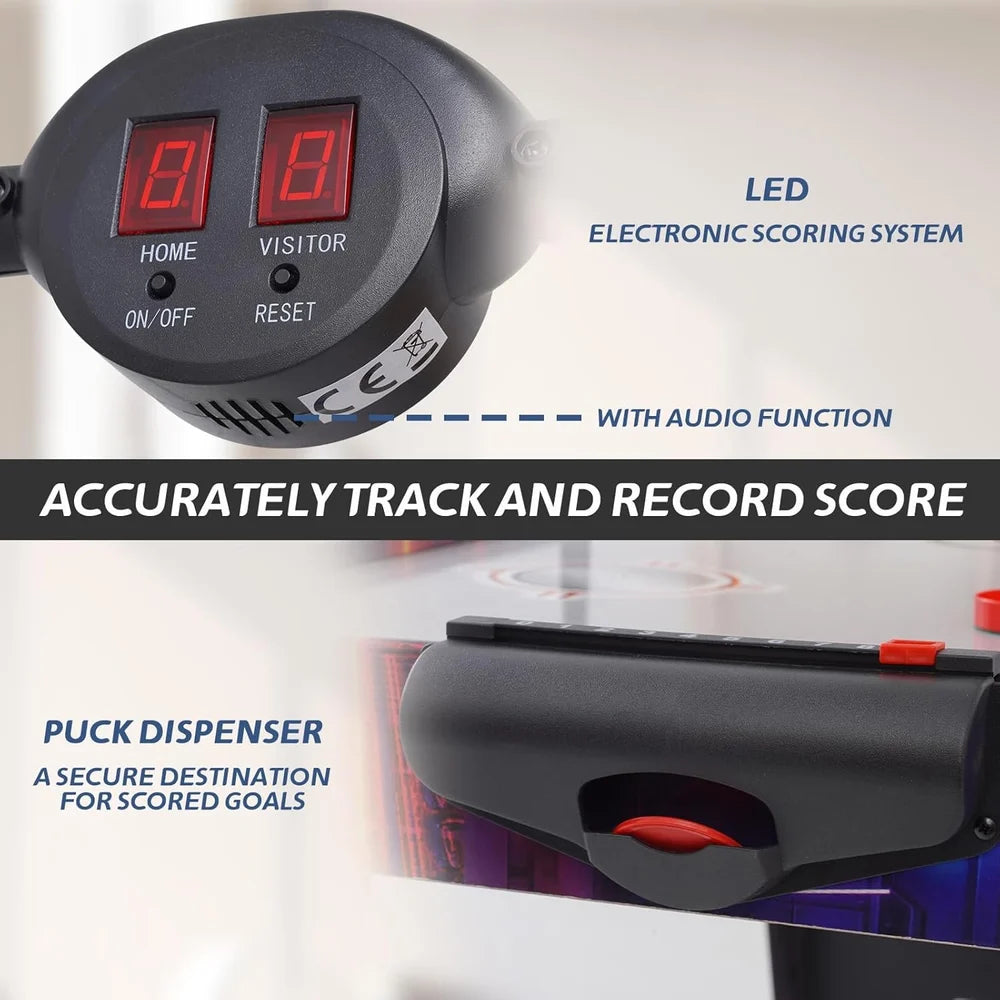- 【DIGITAL LED SCOREBOARD 】The air hockey table for kids is equipped with a high-tech digital and electronic scoring system, so you can easily keep track of the score.