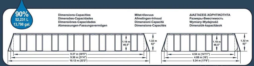 BESTWAY 31'4" X 16' X 52"/9.56M X 4.88M X 1.32M RECTANGULAR POOL SET