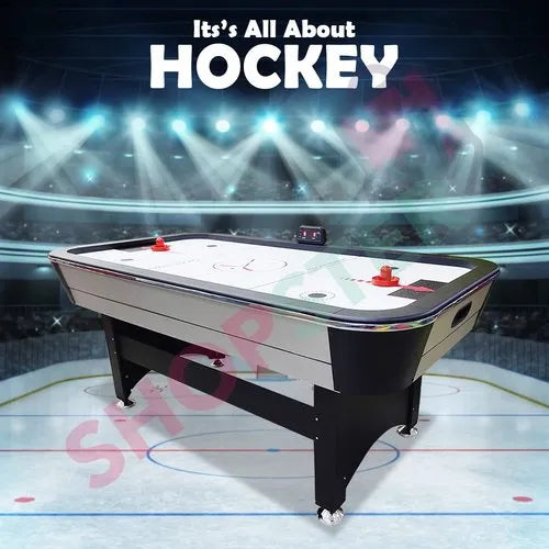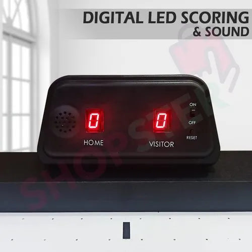 - led scoring capability: shopster air hockey table includes an led electronic overhead score keeper that stretches over the table and includes arcade sound effects and a game timer.