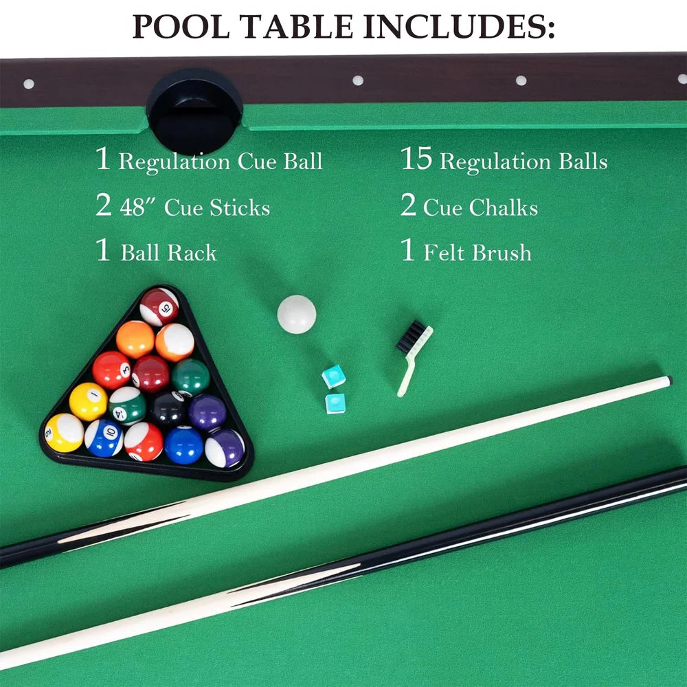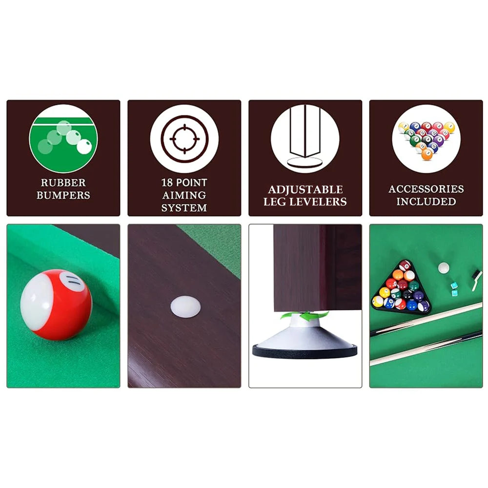 - More Thoughtful Details: Our Heavy-duty pool table has a smooth and durable felt surface for a smooth ball roll of the included pool ball set. Built-in ball pockets and automatic ball return make re-racking a breeze. It features a true shooting aiming system and also designed protection corners for added safety