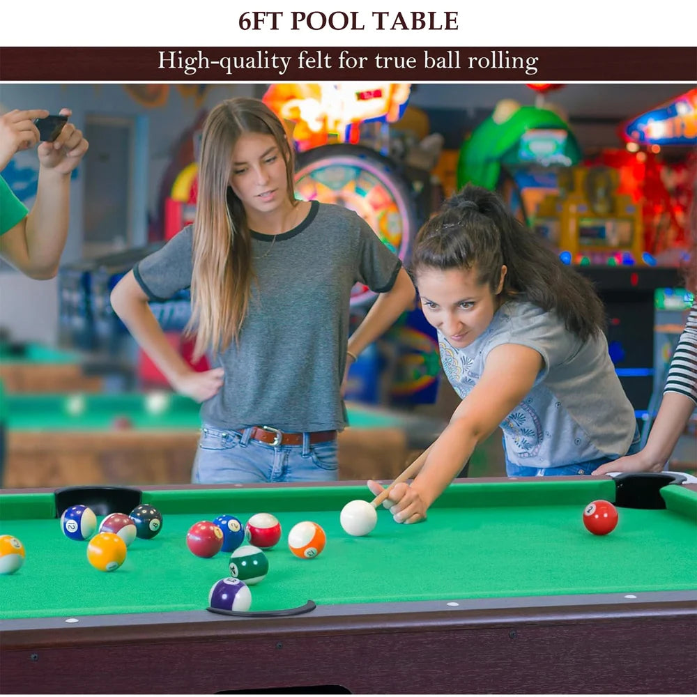 - Fit Various Occasions: The 6FT Pool table is suitable for indoor entertainment between family, friends and colleagues, sure to keep your friends entertained for hours on end. Designed in a contemporary style with a unique and premium look, it is perfect for home game rooms, arcades, and other entertainment areas
