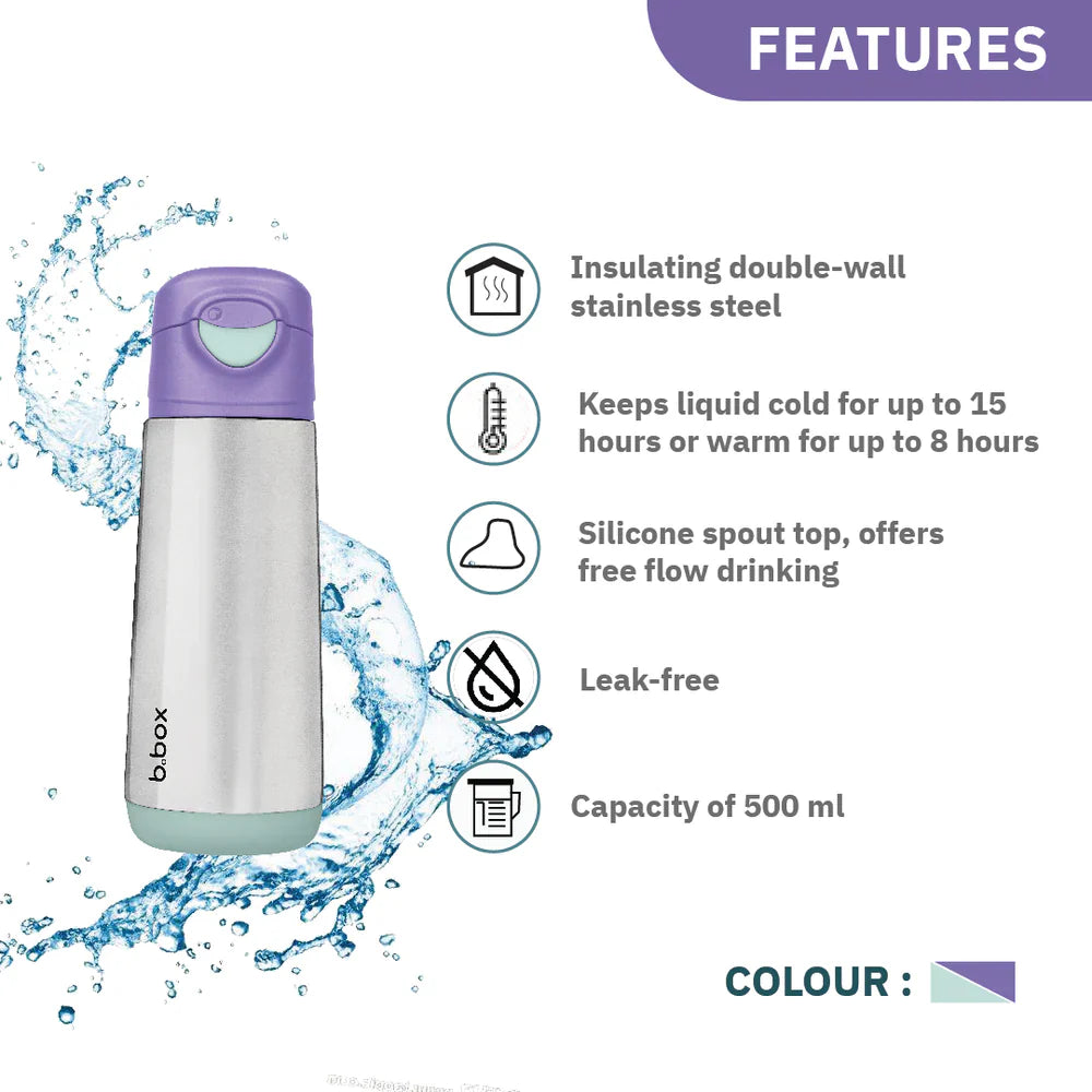 b.box Insulated Sport Spout Drink Water Bottle 500ml Lilac Pop Purple