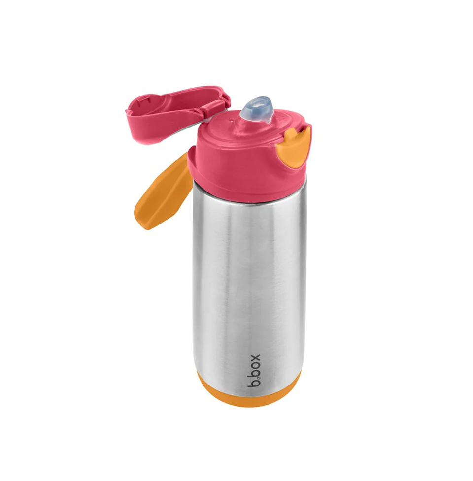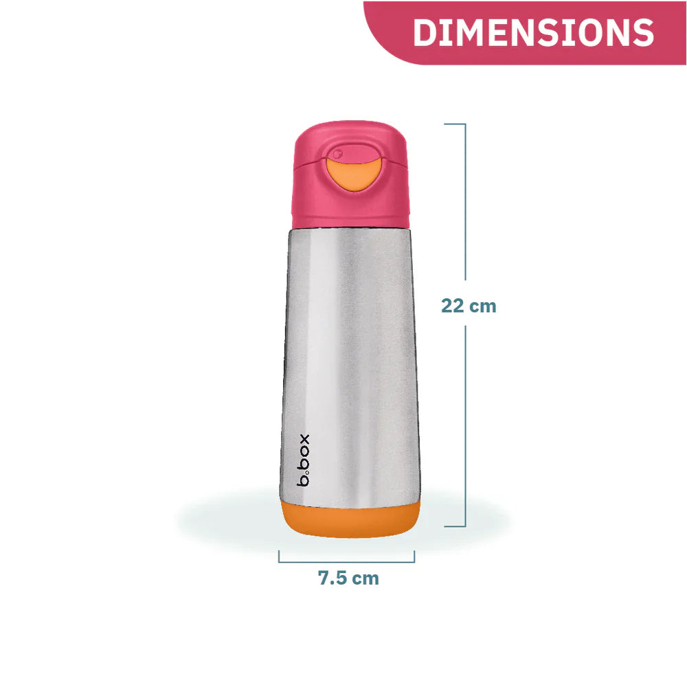 b.box Insulated Sport Spout Drink Water Bottle 500ml Strawberry Shake Pink Orange