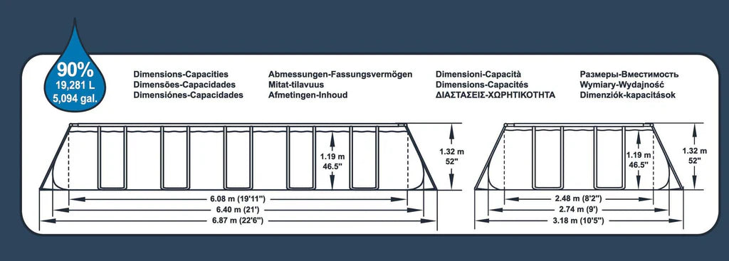 - Water Capacity (90%): 19,281 L (5,094 gal.)