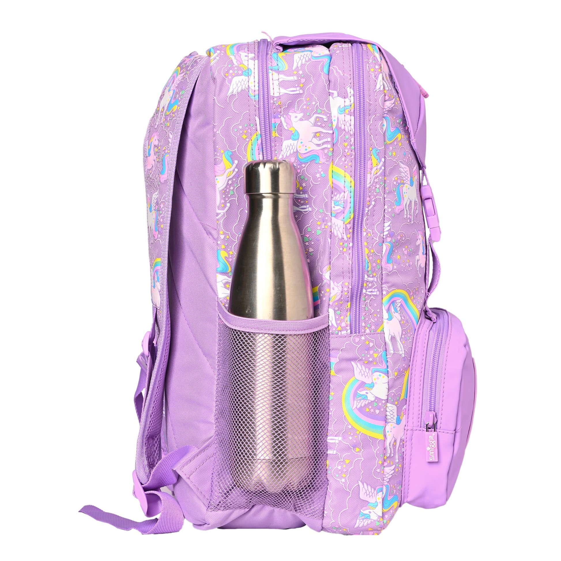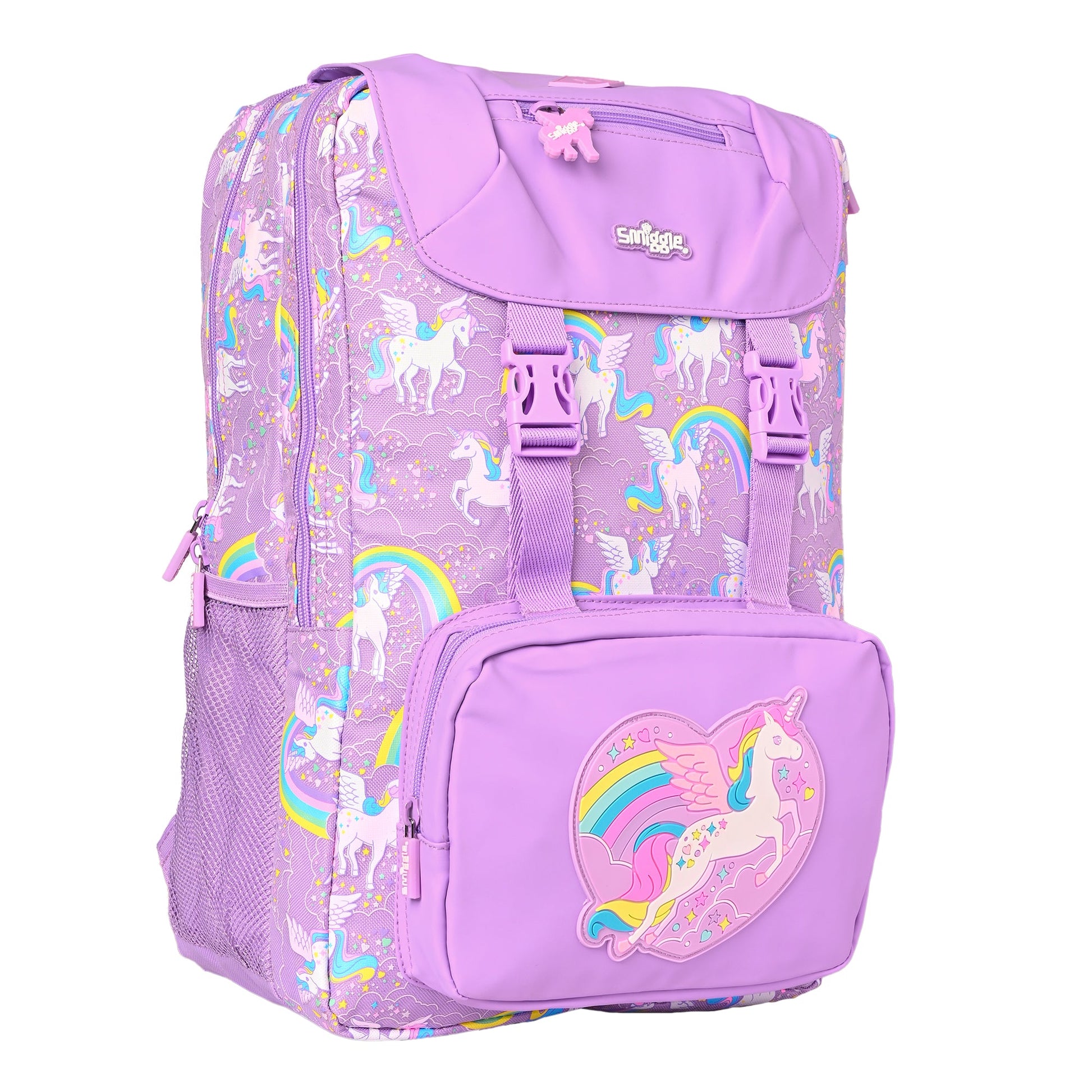 - This Foldover Backpack from our Away collection is the perfect pick for storage and style galore! It features four zipped compartments, dual drink bottle sleeves, a 15-inch laptop compartment to make school mornings and traveling a breeze! Plus, stylish design details including specialized fabrication, a silicone character badge and a graphic print!