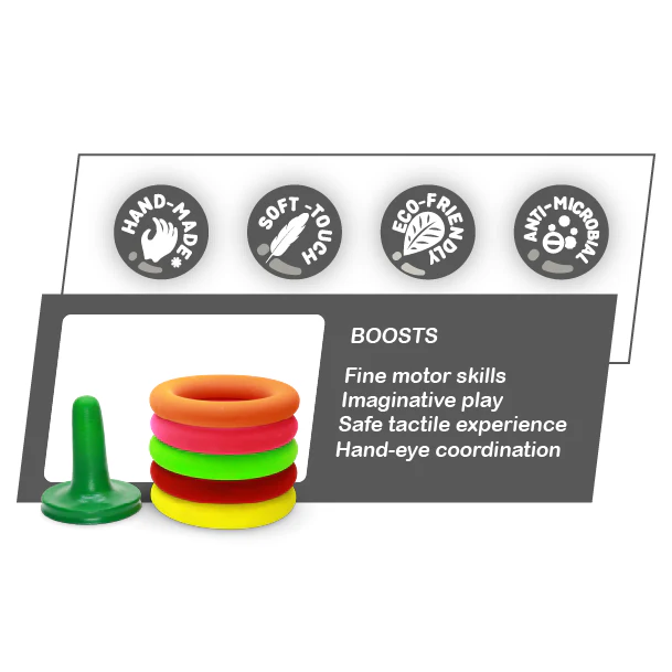 - DEVELOP FINE MOTOR SKILLS: Watch as your little one grasps, moves, and manipulates the soft and squishy toy rings. This activity game is an excellent way to improve their fine motor skills and hand-eye coordination while having a blast. A soft, safe learning game for endless fun and development.