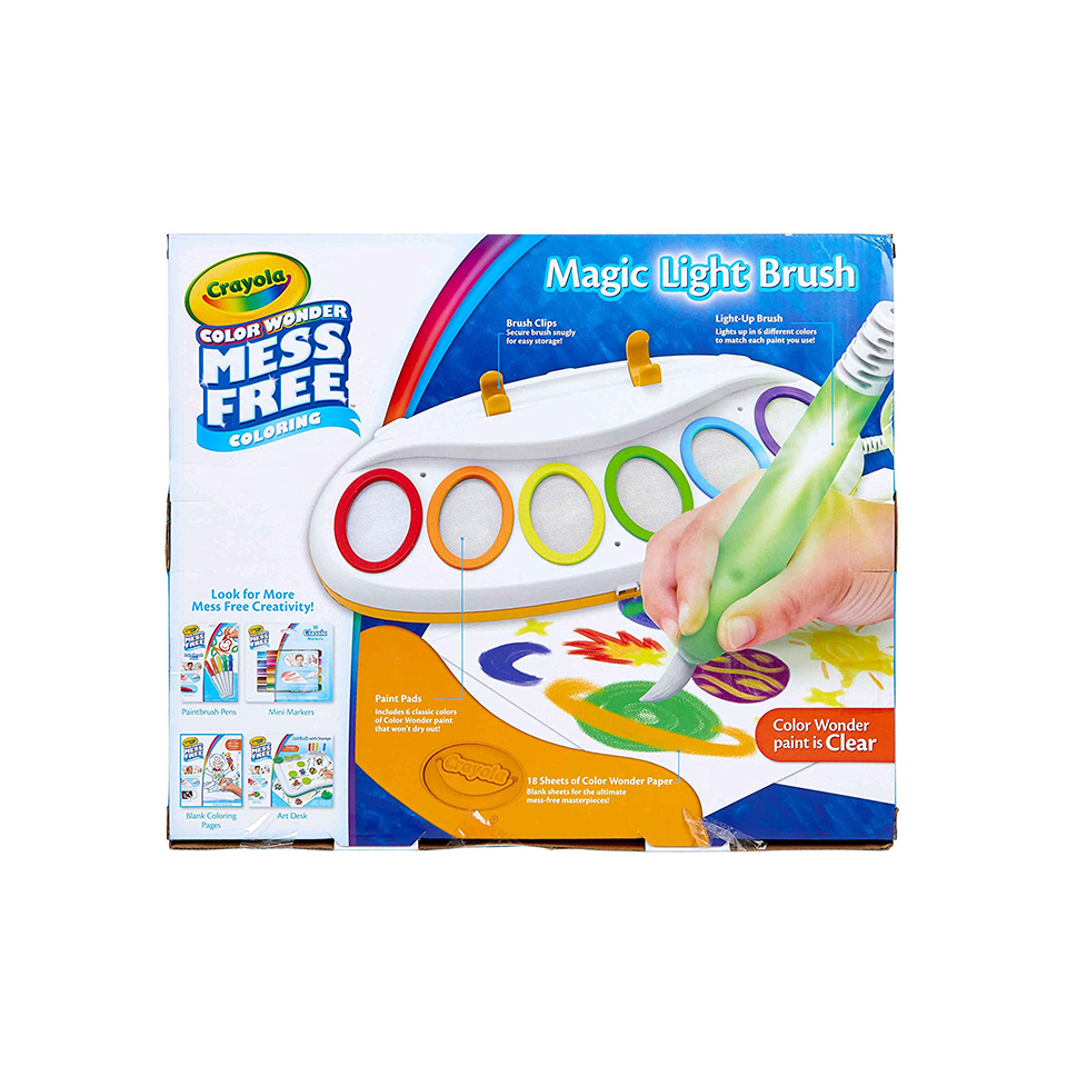 - COLOR WONDER PAINT SET: Features Magic Light Brush Unit, 6 Color Wonder Paints, and 18 Blank Color Wonder Paper Sheets.