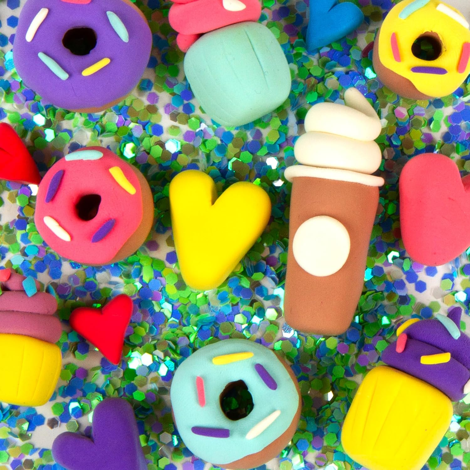 - Model Magic (140 g), 3 art panels, confetti, cording, 3 design sheets, tape, clay tool and instructions