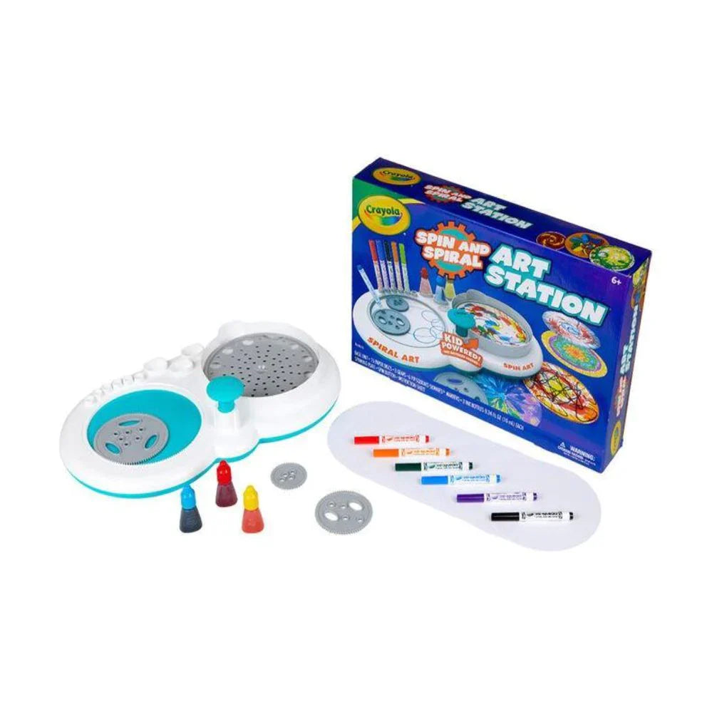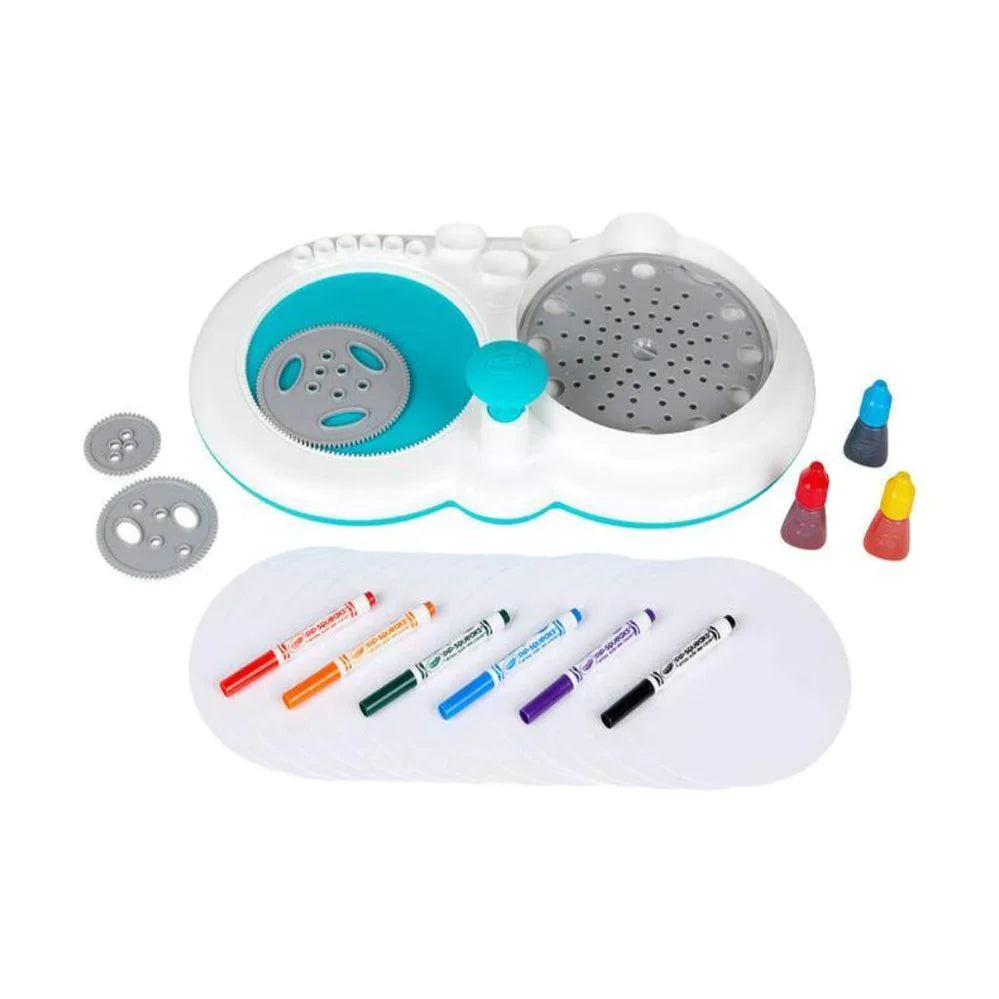 - CRAYOLA CRAFT KIT: This fun Arts and Crafts Kit for kids includes 3 Spiro Gears, 6 Pip-Squeaks Markers, 3 Ink Bottles, 15 Paper Discs, 1 Base Unit, and Instructions.