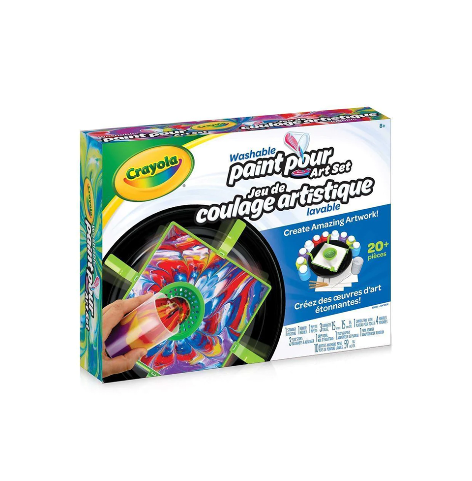 Pour out a colourful masterpiece with Crayola Washable Paint Pour Art Set! Paint pouring is the fun, easy way for even novice painters to achieve beautiful works of art. The best part is that there’s no cause to worry either with the included less-mess paint tray. Even the occasional “oops” is no problem with the included washable paint. A truly magical and fun art activity for kids and adults!