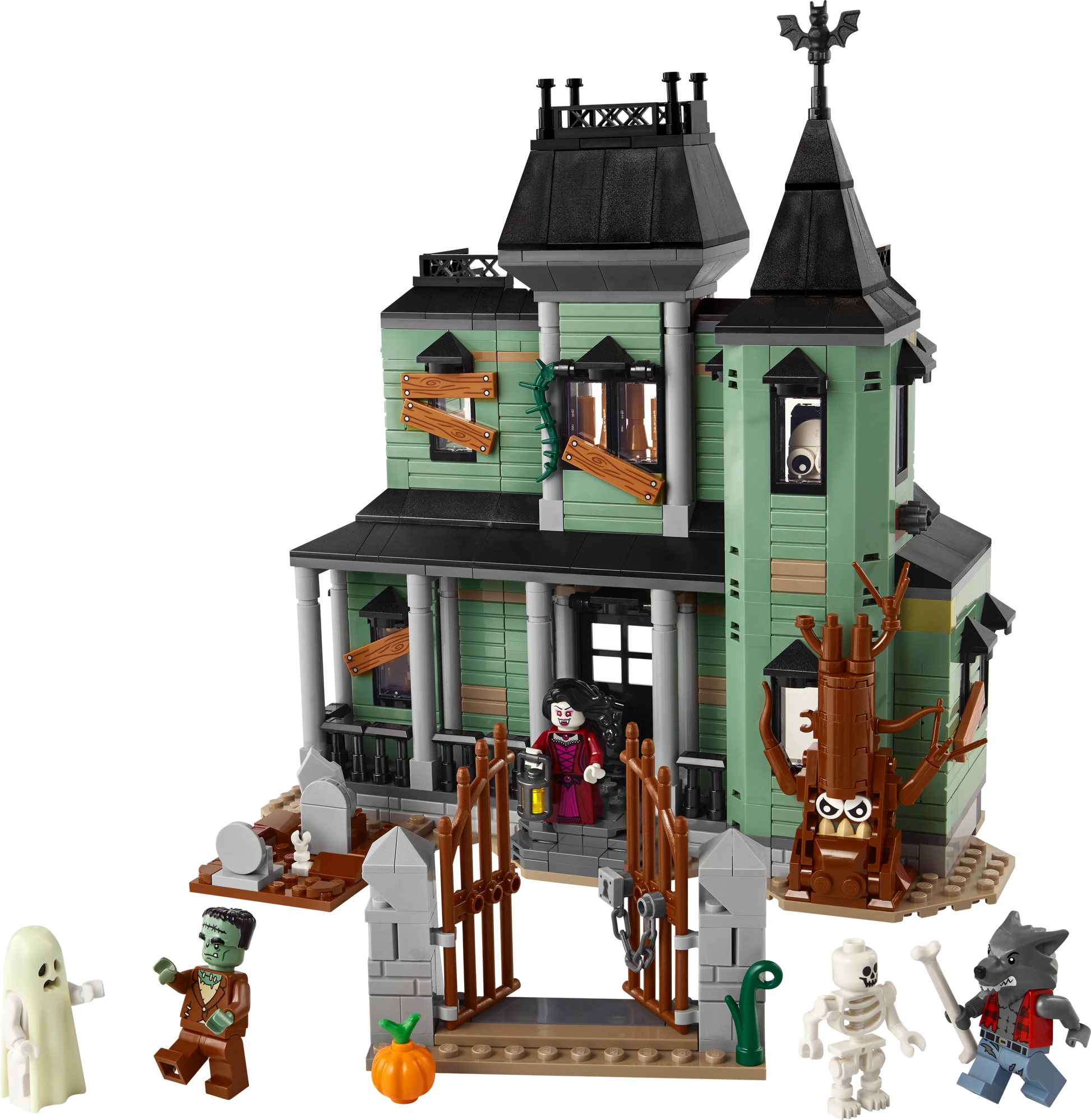 - 736-piece 3in1 set with a haunted house measuring over 25 cm (9.5 in.) high