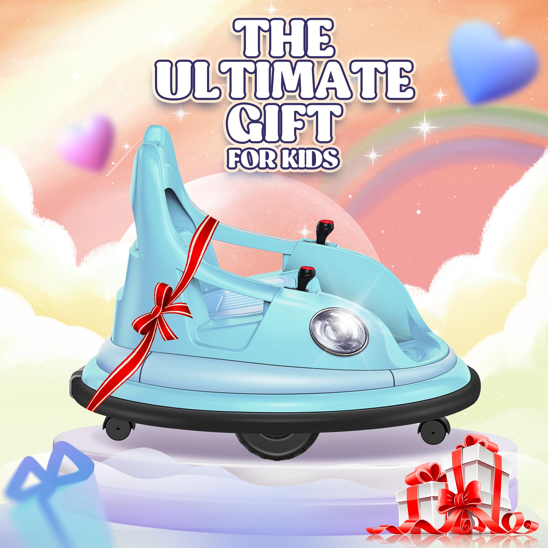 This 12V Kids Bumper Car combines safety and excitement with dual driving modes, a rechargeable battery offering up to 90 minutes of play, and a full 360-degree spin feature. Designed for toddlers aged 3 to 8, it includes built-in music, LED lights, and a secure 5-point harness, making it the perfect gift for active, adventurous kids.