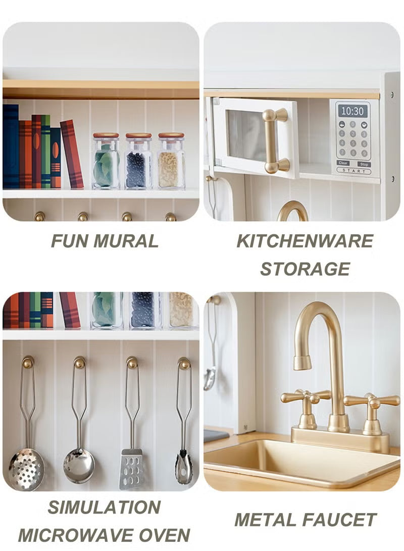 Deluxe Wooden Kids Pretend Play Kitchen with Sink, Cooking Stove, Oven & Kitchen Accessories