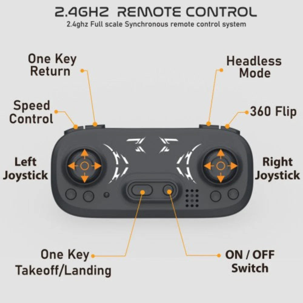 - Function: Forward-Backward, Right-Left, Indication LED, Flexible Design, 360 Flip, One key Return, Headless Mode, One Key Take OFF/Landing, Altitude Hold
