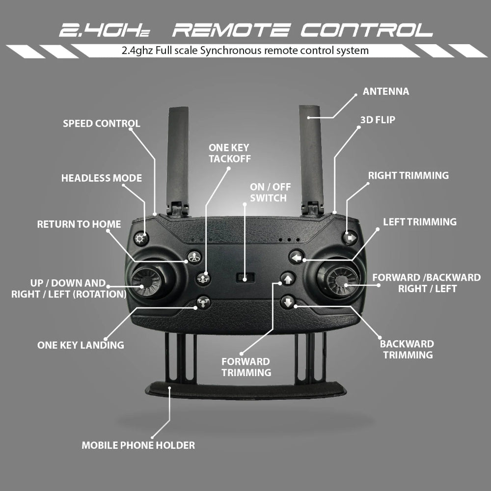 - Kit Content : Drone, Remote, Drone Battery, USB Charger, Propeller Guards, Screw Driver