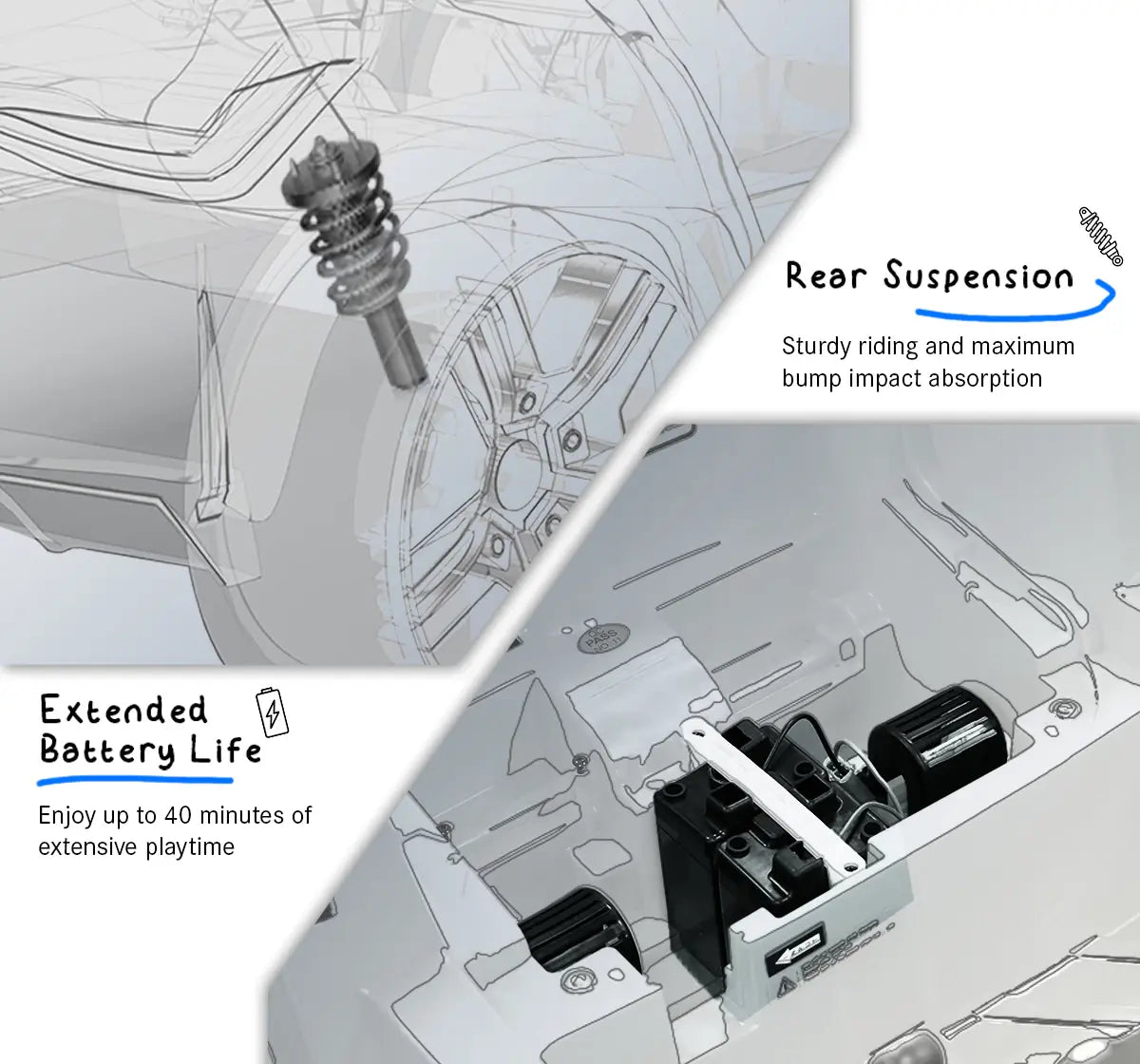 - Suspension: Rear suspension provides a comfortable ride, absorbing bumps and ensuring a pleasant journey for young drivers.