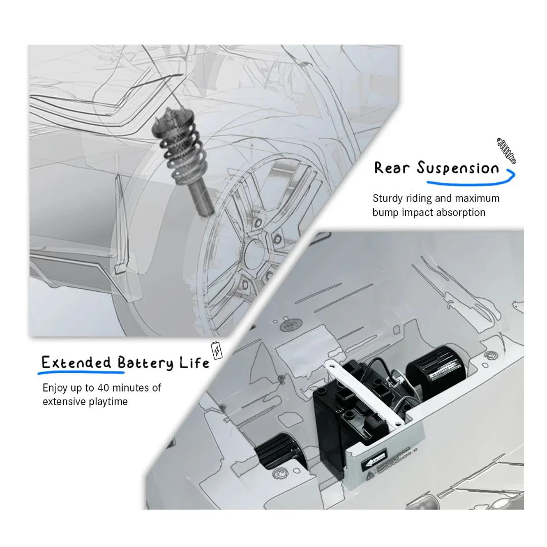 - Suspension: Rear suspension provides a comfortable ride, absorbing bumps and ensuring a pleasant journey for young drivers.