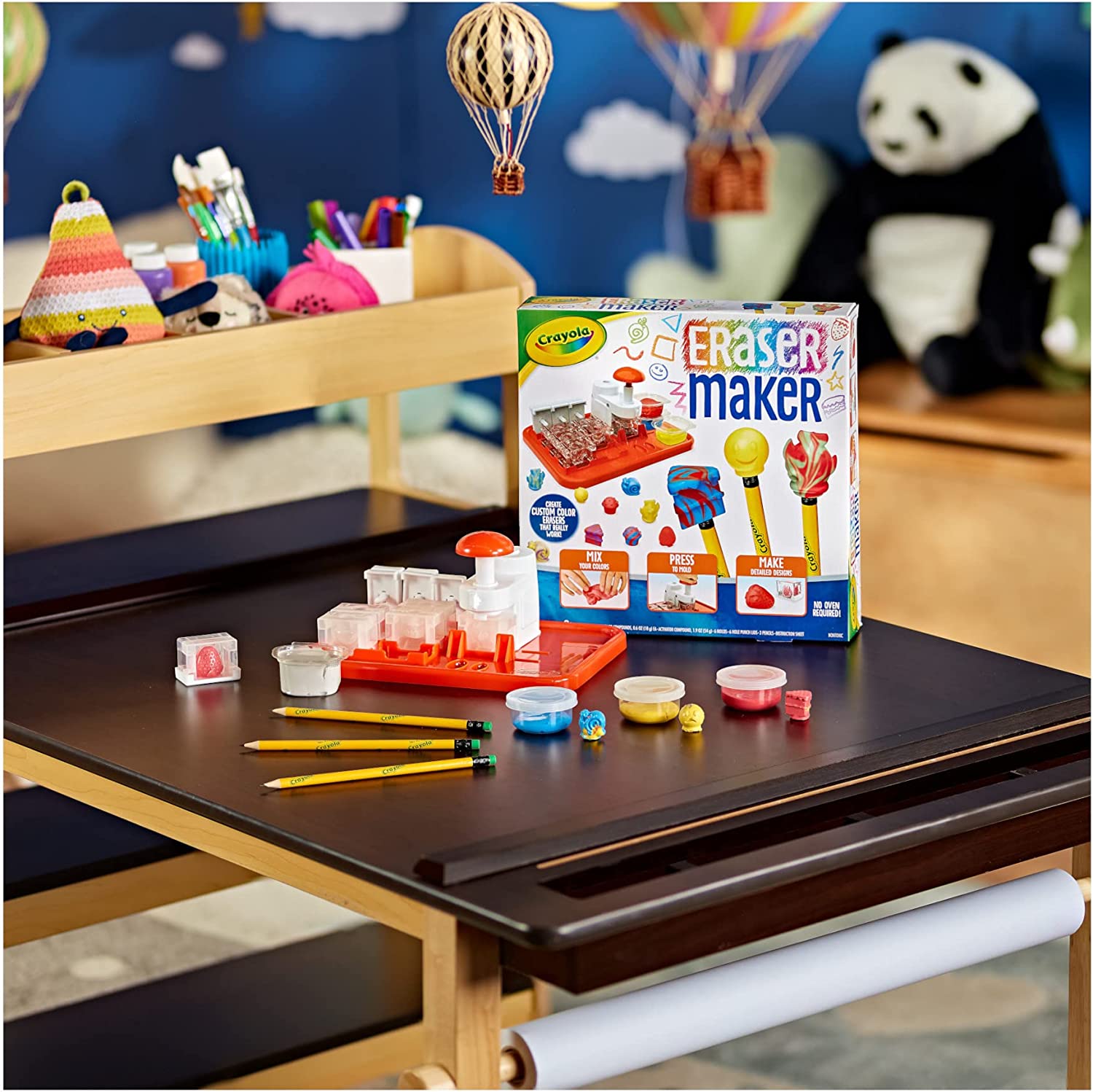 Why does the pointy end of the pencil get to have all the creative fun? With the Crayola Eraser Maker it’s easy for kids to mix and mold their own colourful, whimsically themed eraser figures! Just follow the step-by-step instructions and in no time kids can go back to school with cool, colourful erasers to customize the tops of their pencils. This set includes the Eraser Making Unit, 6 Eraser Making Molds, Eraser Making Solution, 3 No. 2 Crayola Pencils, and an Instruction Booklet. The Eraser Maker is an innovative and creative toy that makes a great gift for kids ages 8 and up.