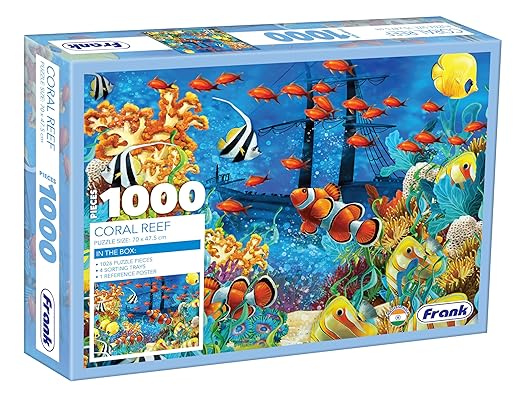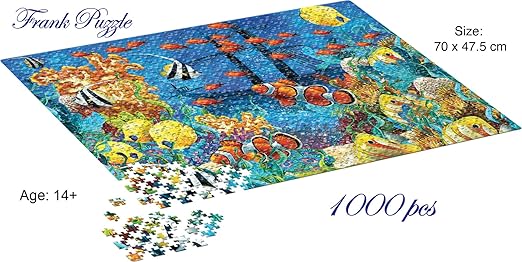 - About the Product: Immerse yourself in the vibrant marine world with the Frank Coral Reef Jigsaw Puzzle. This 1000-piece jigsaw puzzle for adults and kids aged 15 and above features stunning underwater illustrations, offering a puzzle game that is both visually captivating and mentally stimulating.