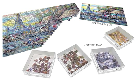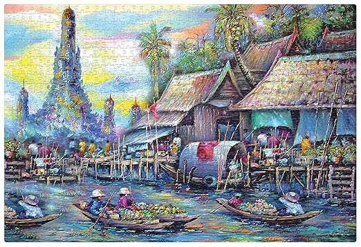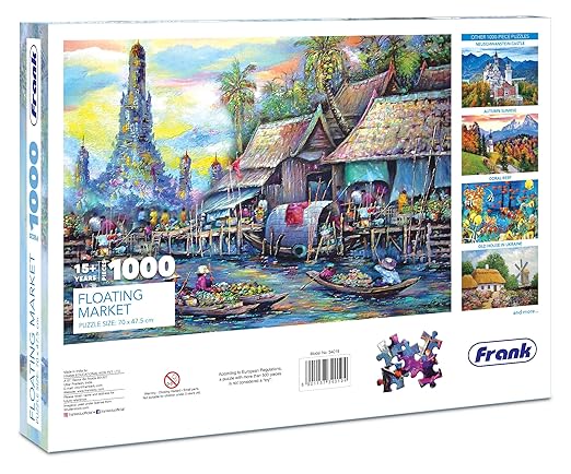 - About the Product: Immerse yourself in the vibrant hustle and bustle of the Frank Floating Market Jigsaw Puzzle. This 1000-piece jigsaw puzzle for adults and kids aged 15 and above features realistic illustrations, offering a fun and engaging puzzle game that enhances focus, memory, and problem-solving skills.