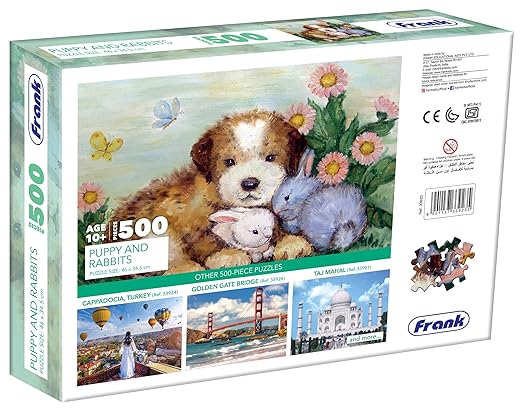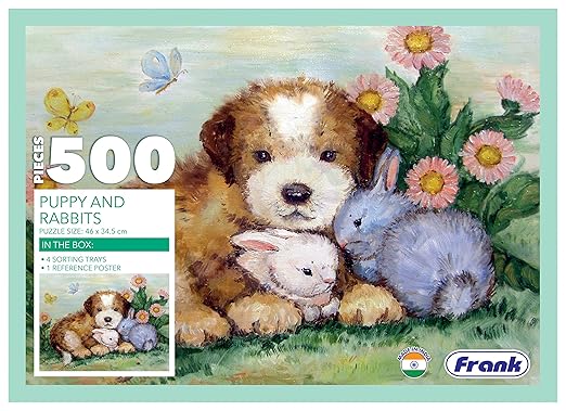 - Fun and Challenging Puzzle Game: Step into a heartwarming world of furry friends with the Frank Puppy and Rabbits Jigsaw Puzzle. Featuring 500 carefully crafted pieces, this Jigsaw Puzzle for Adults offers a fun and engaging puzzle game experience for both adults and kids aged 10 and above. Ideal for animal lovers and puzzle enthusiasts!