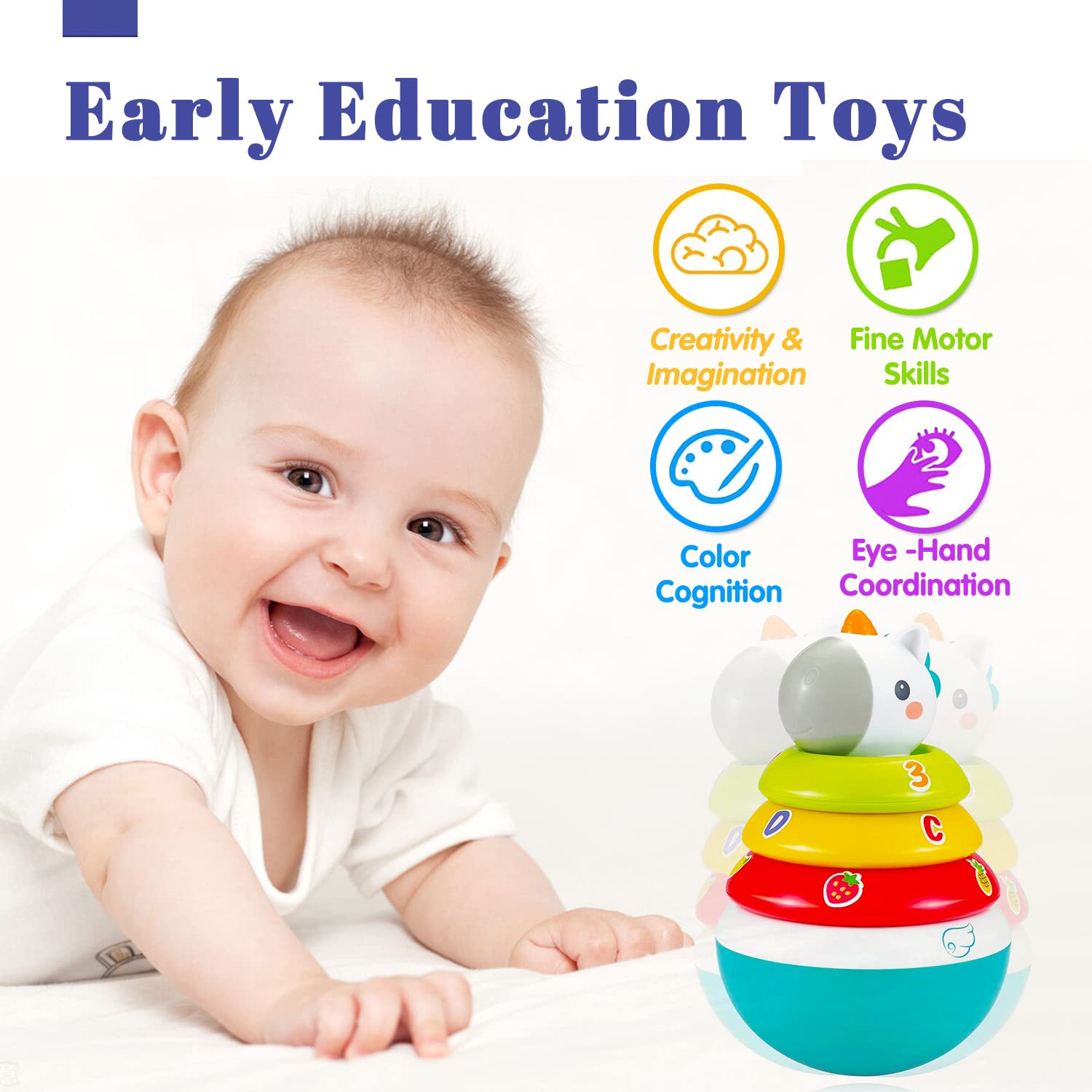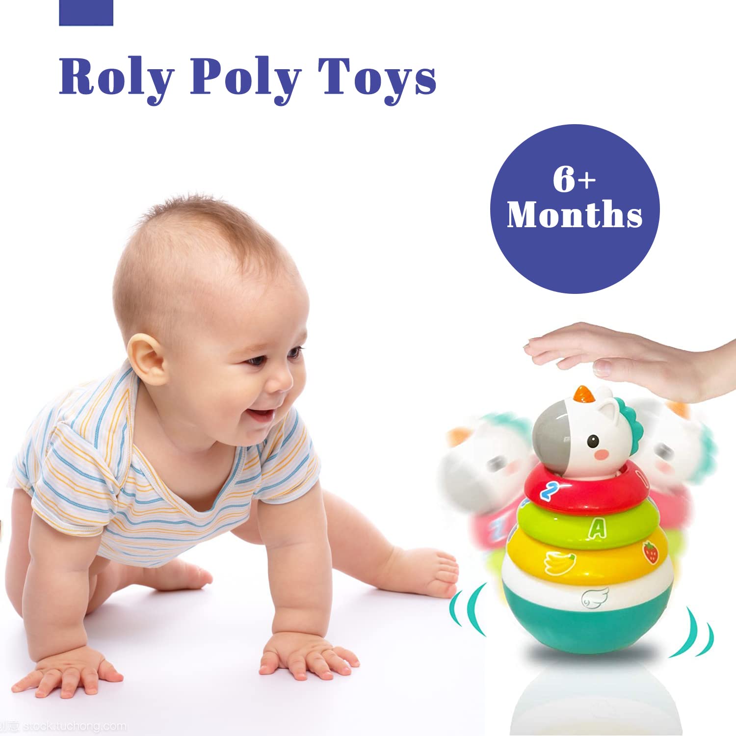 Hola Baby Unicorn Stacking Rings Toys Mini Rainbow Montessori Roly Poly Toy