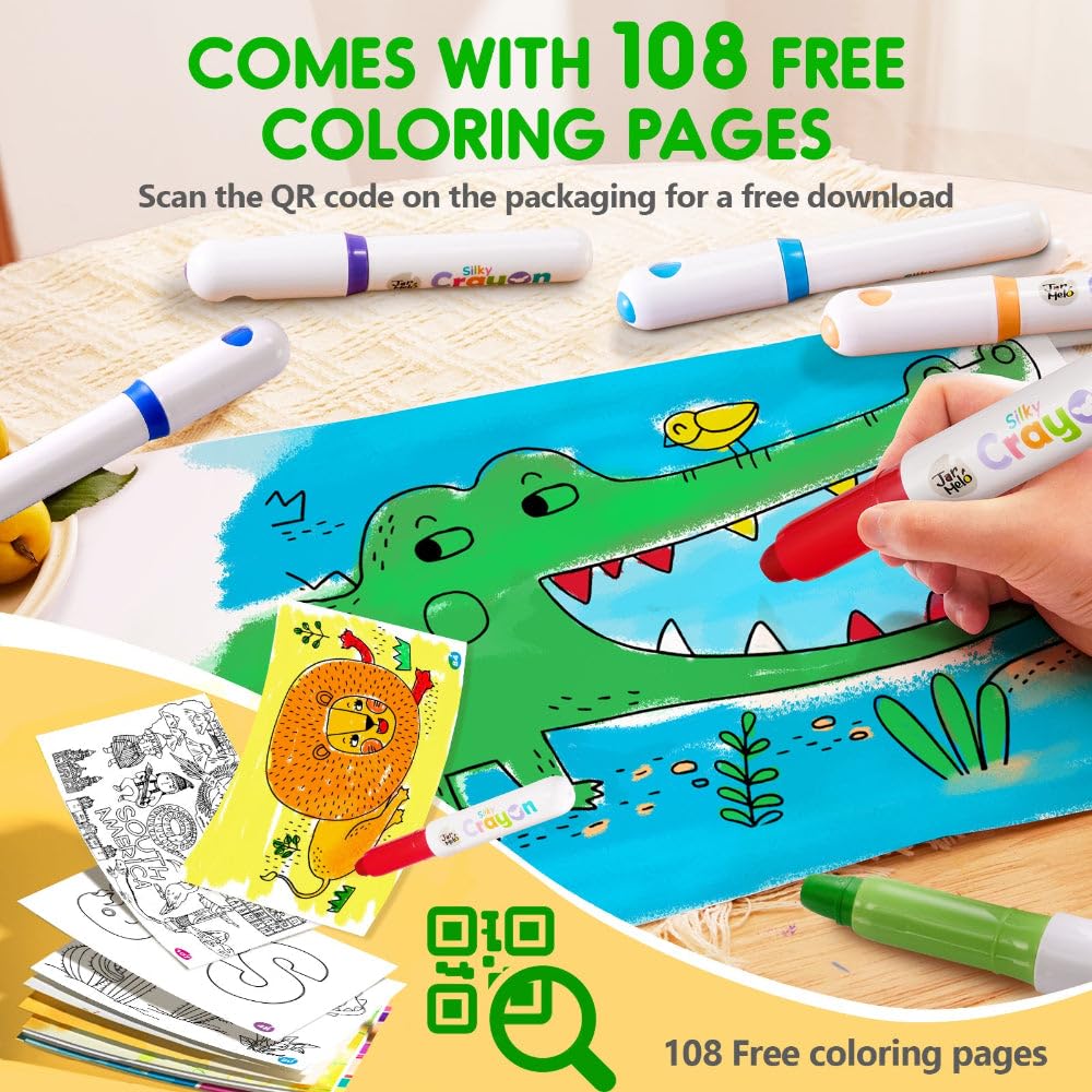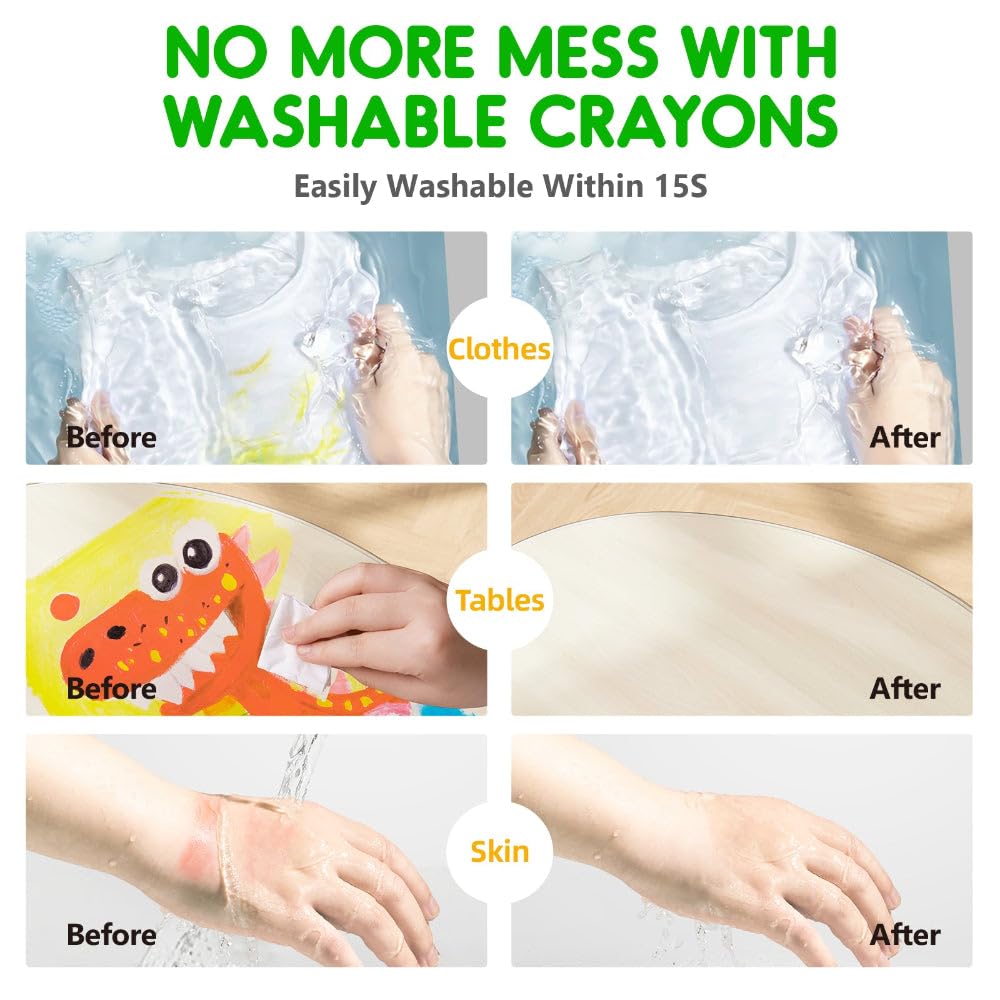 Vibrant Colors: Our crayons boast exceptionally vivid hues, surpassing ordinary crayons. Enhance your toddler's visual development and nurture artistic aesthetics with these brilliant colors. Silky Smooth Coloring Experience: Enjoy a buttery-smooth coloring experience that reduces resistance by 20%. These jumbo crayons are designed to glide effortlessly, making coloring a delight for kids aged 1-12. Rotatable Design for Durability: Twist and use precisely the amount needed. The sturdy casing prevents breakage, fostering fine motor skills while ensuring the crayons remain intact, even with active preschool activities. Bonus 108 PDF Coloring Pages: Receive a set of 108 downloadable coloring pages via the QR code on the package. Featuring 7 themes, these pages cater to kids' coloring needs, progressing from easy to challenging. Ultra-Washable Crayons: Upgrade to crayons that wash off easily from skin, clothes, and tables. Say goodbye to the mess! Parents can now relax while their kids explore the world of colors. Non-toxic Crayons: Crafted with safety in mind, these crayons are non-toxic, ensuring worry-free creativity for your little ones. A perfect addition to Easter baskets and a delightful surprise for any occasion.