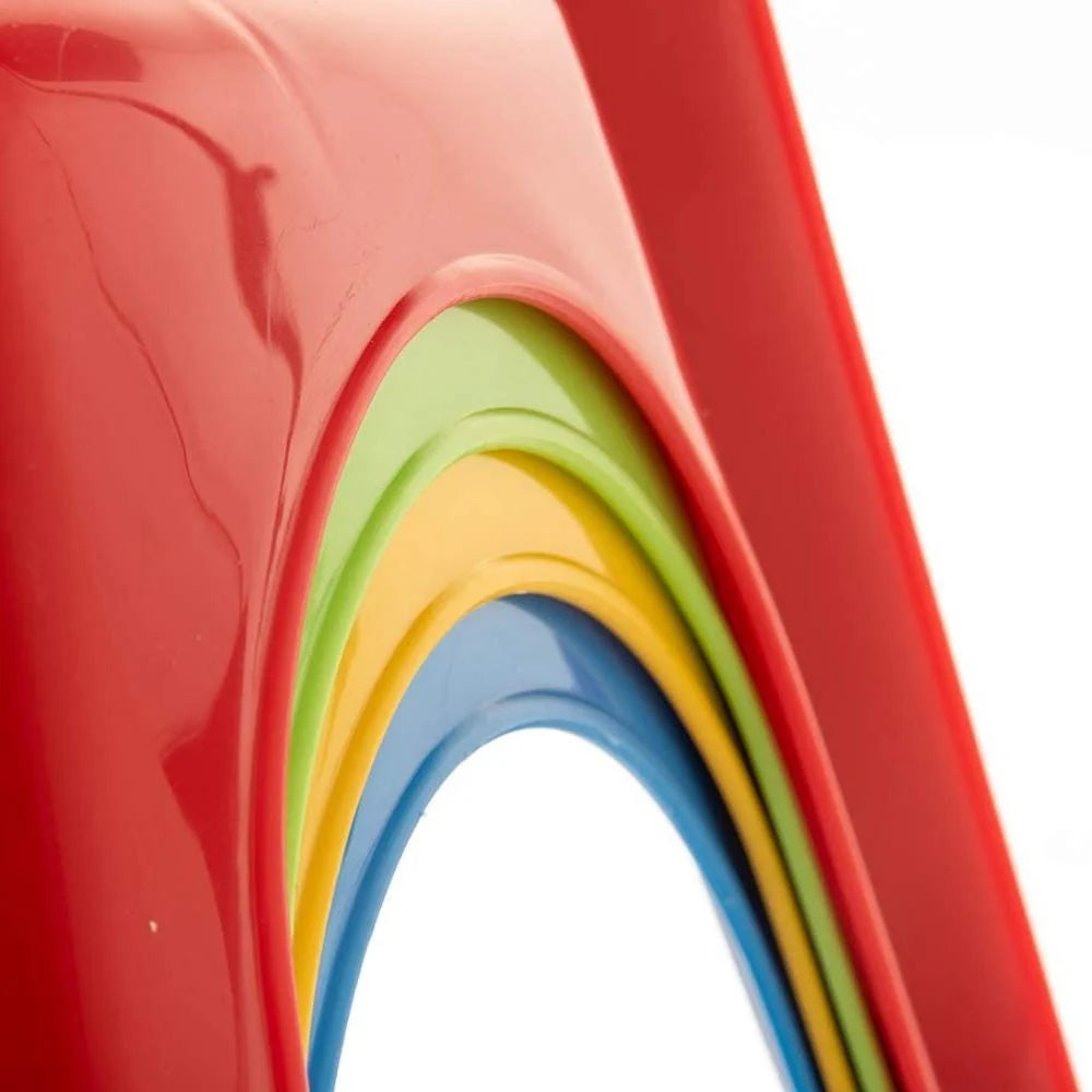 - MULTI-PURPOSE DESIGN: This kids outdoor or indoor table & chair set comes with 1 red table with 4 vibrant chairs (classic red + grass green + honey yellow + sky blue). Our playroom furniture is great to use for arts & crafts, writing, reading, homework, snack time.