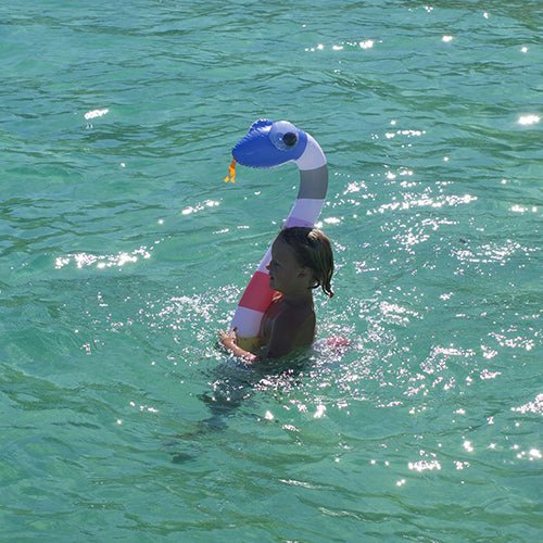 Just add water and bring playtime to life. The Into The Wild Kids Inflatable Noodles are thrilling pool and beach toys designed to capture the imaginations of young children. Made for hands small and big with their easy to handle and lightweight design, perfect for floating with them and using them in games. Big bright eyes with their snake shaped design and multi colored maxi stripe print will make for endless hours of outdoor fun..