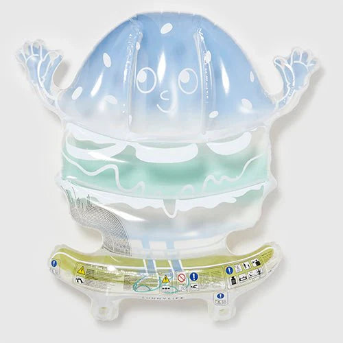 Guarantee youngsters non-stop fun in the sun. The Burger Boy Kids Lie-On Float is playful, unique, and ultra-rad, the perfect companion for adventure-packed days spent poolside and beach hangout sessions. Made for maximum entertainment and relaxation, kids of all ages will love to make a splash with this outrageously cool inflatable. Turn heads and ensure this season is one to remember with its trendy burger shaped design, skater boy graphic, and ocean-inspired hues