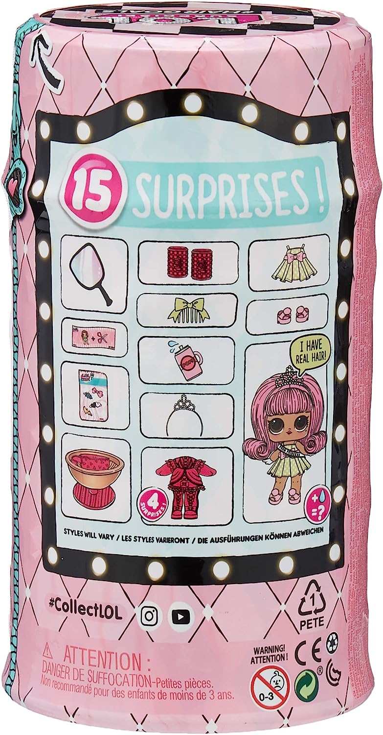 It's time for the big reveal, because L.O.L. Surprise Got a fabulous makeover real hair From new surprises to new looks to totally new ways to unbox, the makeover series is all about transformation. Collect all 12 characters and strut serious style with L.O.L. Surprise hairgoals. L.O.L. Surprise hairgoals dolls are ready to reveal their new looks, including new characters with real hair in so many fabulous styles. Unbox 15 surprises (1) magic mirror; (2) secret message; (3) hair barrette stickers; (4) salon chair; (5) hair curlers; (6) comb; (7) bottle; (8) fashion accessory; (9 12) mystery Disguise; (13) outfit; (14) shoes; (15) L.O.L. Surprise hairgoals doll. New hairspray can capsule transforms into a salon chair, display case, doll stand, or purse. Feed or bathe doll to discover a water surprise, including color change Collect all the fabulous new characters and surprises with L.O.L. Surprise hairgoals.