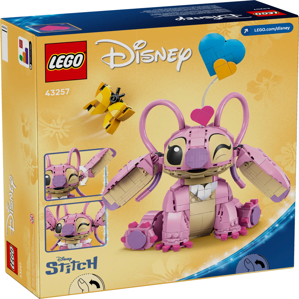 - What’s in the box – This LEGO® ǀ Disney building set features an Angel character from Disney’s Lilo & Stitch TV show, a butterfly and 3 ’floating’ hearts to build and use for decoration