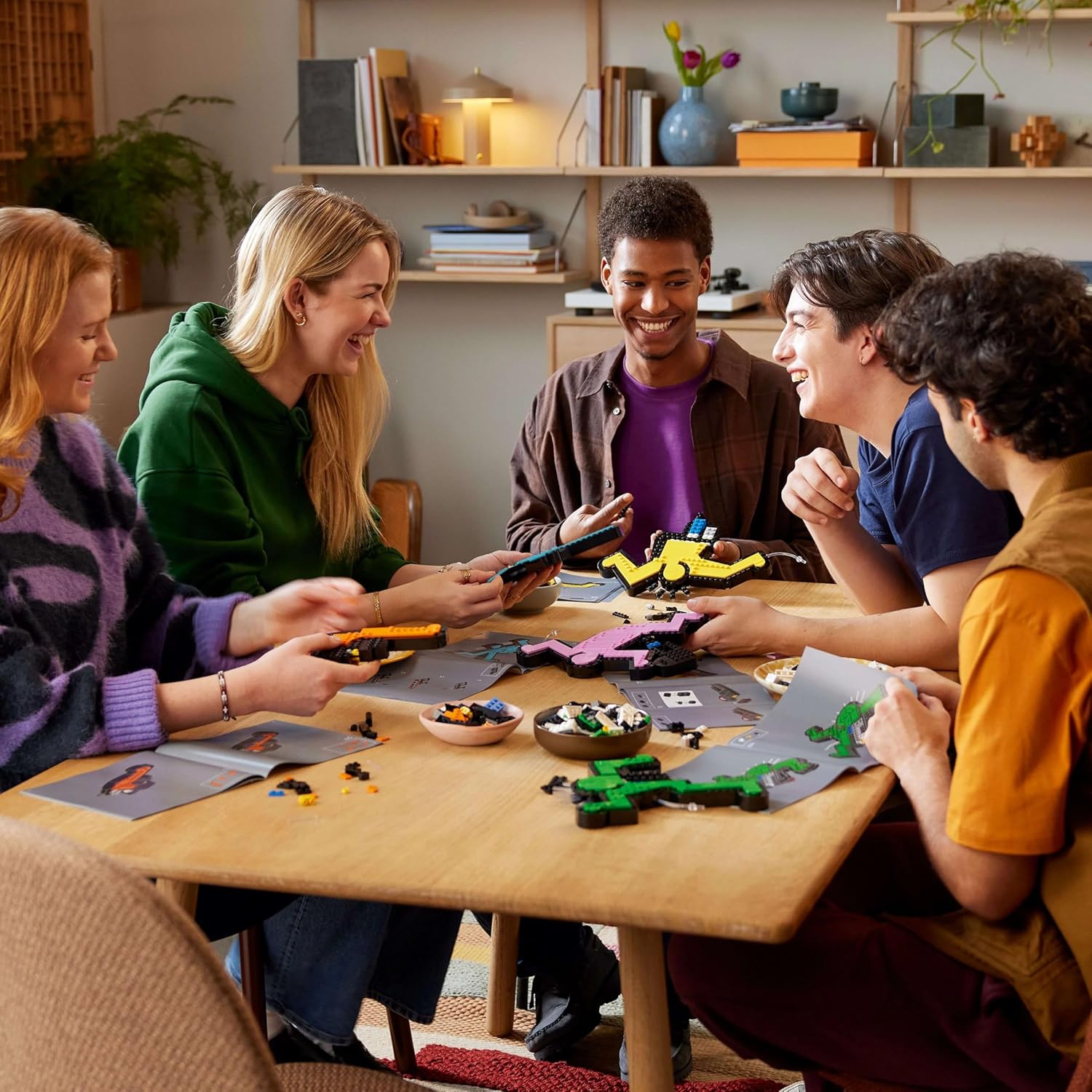 LEGO set comes with 5 building instruction booklets,1 for each of the 5 figures, to create with friends or family members.
