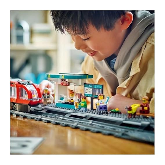 - Building toys for kids who love to play – The toy tram has seating for minifigure passengers and opening double doors, while the station platform features extendable bridging plates for boarding