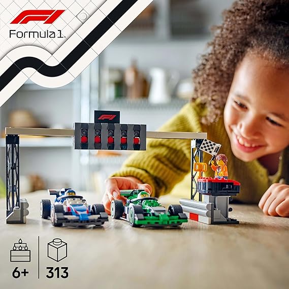 - Realistic race play – Place the Sauber and VCARB driver minifigures into the cockpits of the F1 race cars and slide the panel on the light gantry for realistic grid-start action
