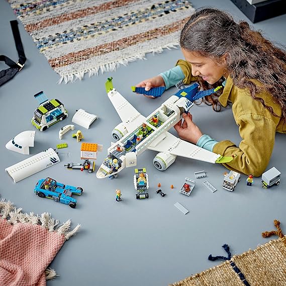 - Model airliner and ground support vehicles building toy set – LEGO City Passenger Airplane (60367) set with realistic detailing and functions