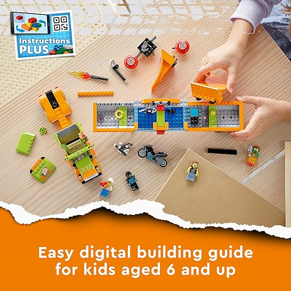 - This amazing truck toy has everything you need to stage exciting stunt events. Kids can activate and launch the stunt bike to trigger the dunk tank function and perform spectacular jumps and landings Makes an impressive birthday or any-other-day gift for kids aged 6 and up. Combine this set with others from the LEGO City Stuntz range for even more spectacular stunt action.