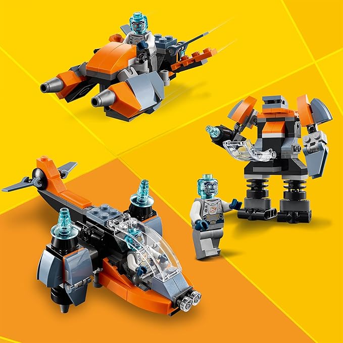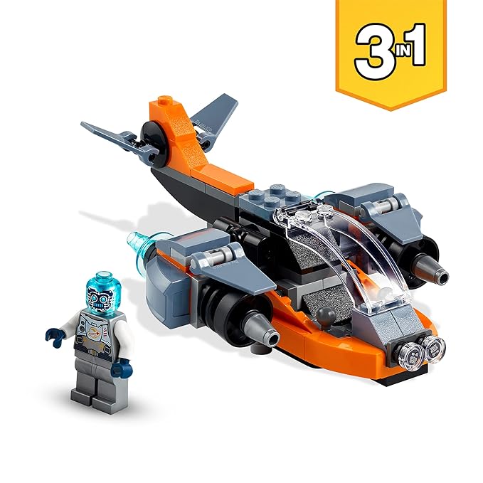 - This LEGO Creator 3in1 Cyber Drone (31111) building set inspires fantastic playtime fun for kids, with 3 models in 1 – a cyber drone, cyber mech and cyber scooter.