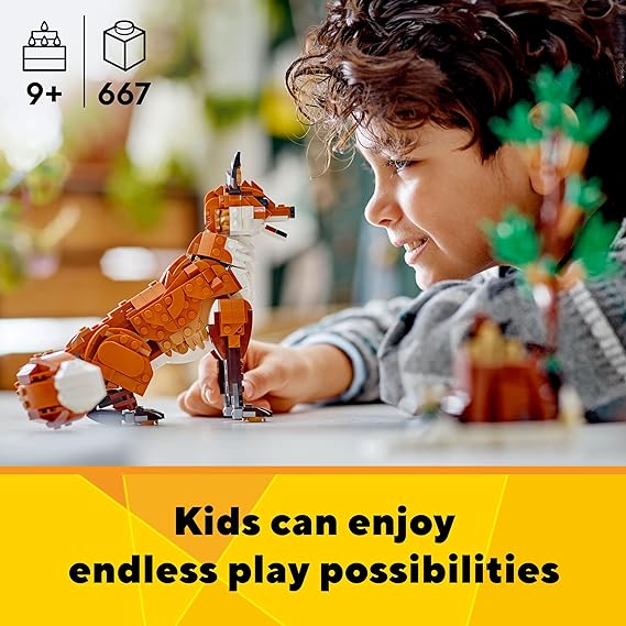 - 3 LEGO animals including a red fox toy in 1 box – Boys and girls aged 9+ build and rebuild 3 different models using the same bricks with the LEGO Creator Forest Animals: Red Fox 3in1 building set