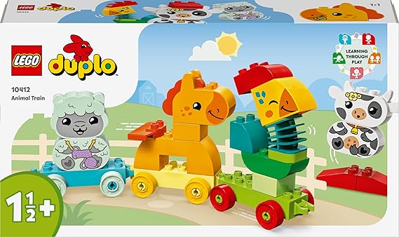 - Animal vehicle toy – This LEGO DUPLO My First Animal Train set for ages 18 months and up includes 4 buildable animals and 3 detachable carriages for pull-along, creative role play