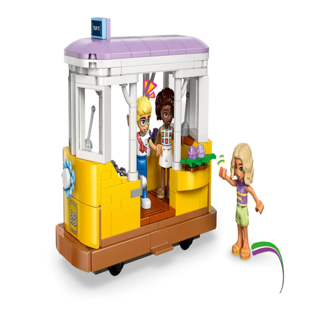 Discover a bounty of flowers and plants throughout this set, which tells the story of Aliya, Olly, Nova, Esma and Nugget the cat, who love to hang out at the flower shop and café. The set is packed with features to inspire creative storytelling. There’s a cute streetcar toy for the characters to ride in and a café with an outdoor seating area and a kitchen with a coffee machine. There’s also a flower stand with bouquets and potted plants for sale. After playing with the set, kids can display the model on a shelf or table to enjoy the pretty flower displays day after day.