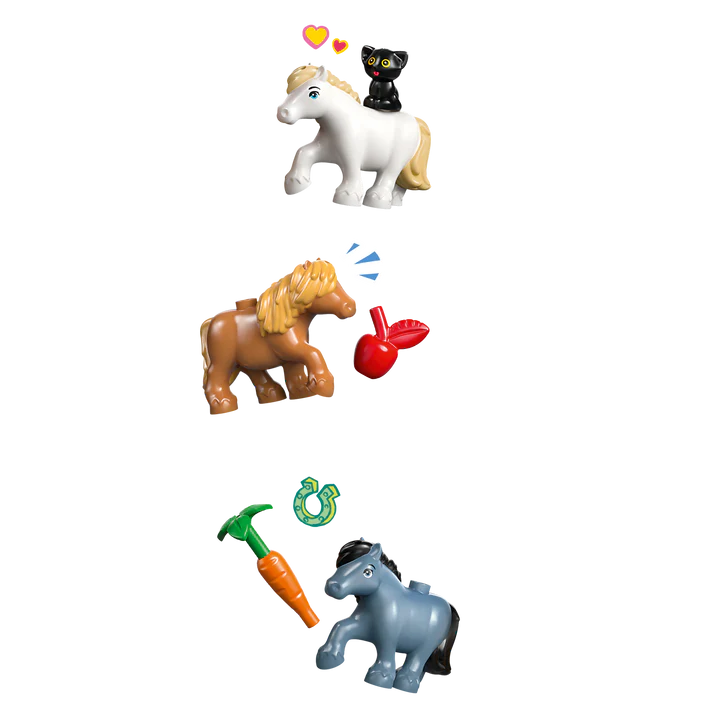 - Pretend-play toy with 4 LEGO® Friends characters, 3 ponies and a cat figure